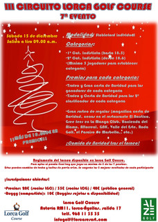 En Lorca Golf Course última prueba de su circuito que nos dará los vencedores finales, con gran sorteo de regalos y comida navideña para todos los participantes.