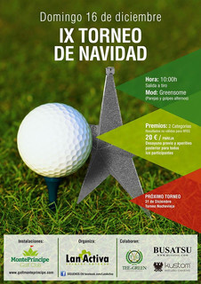 En Monteprincipe tenemos la novena edición de su Torneo de Navidad, se juega por parejas en la modalidad de Greensome. Desayuno y aperitivo para todos los participantes además del buen hacer de Alvaro. Buena opción para el domingo.